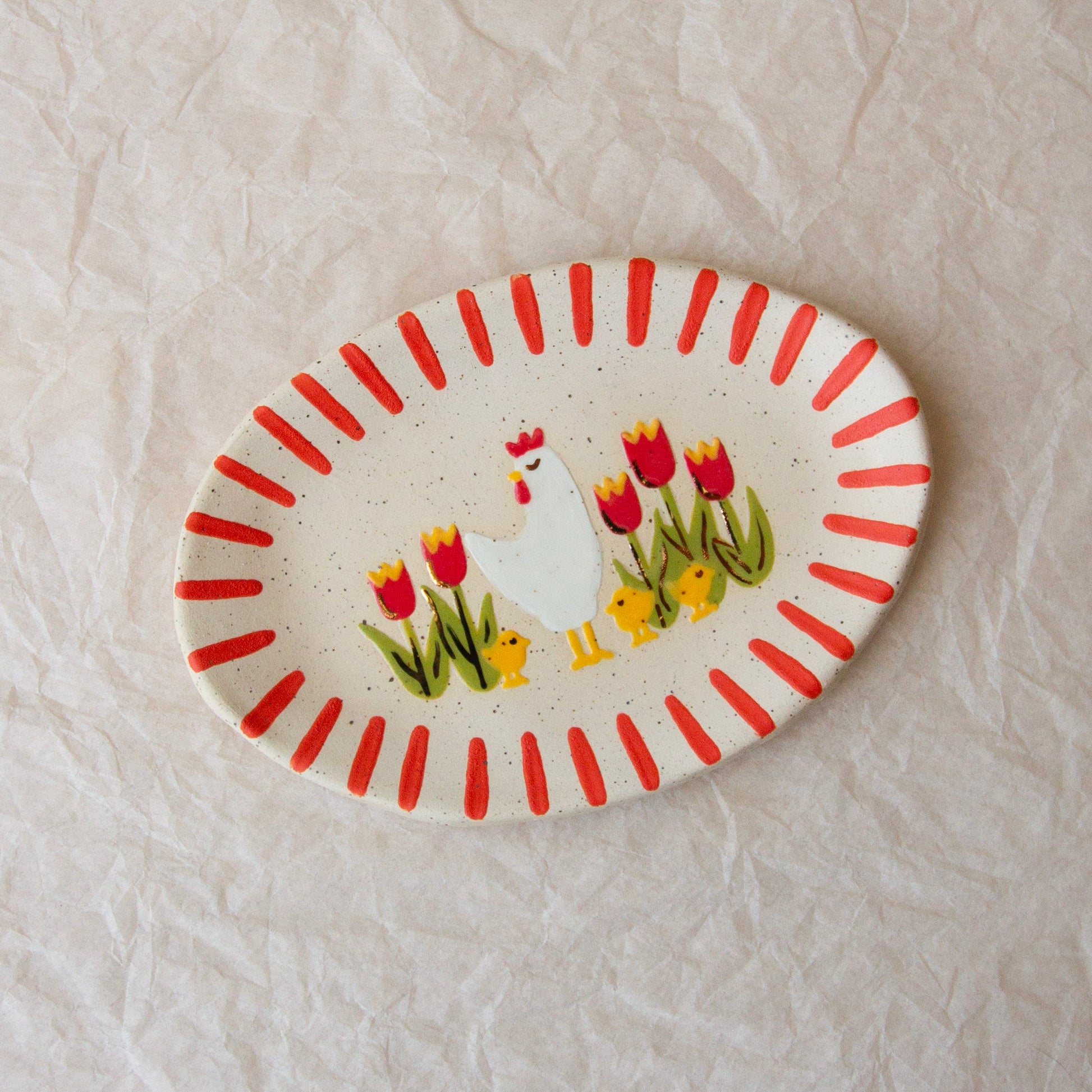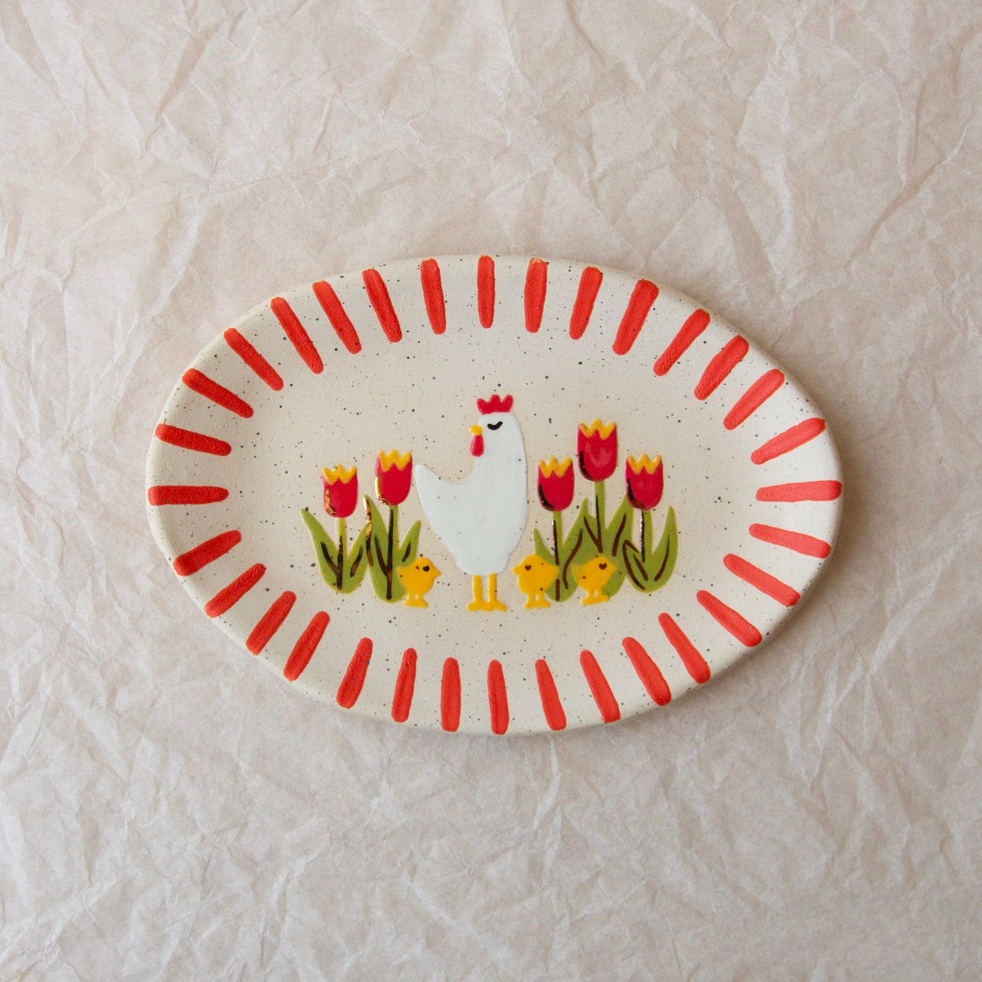 Handmade and hand-painted chicken dish with 24k gold painted details.