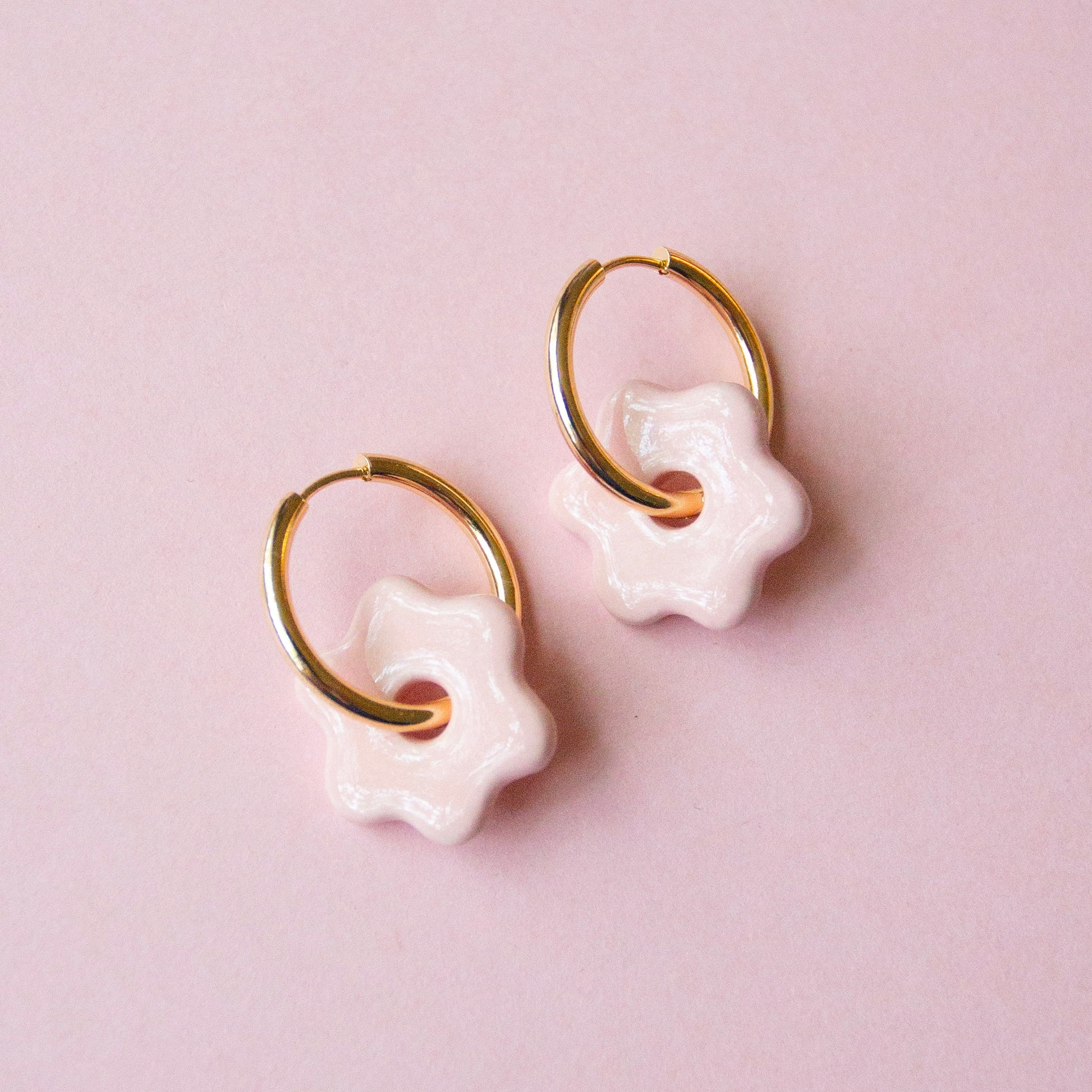 handmade ceramic daisies with gold-plated stainless steel hoops